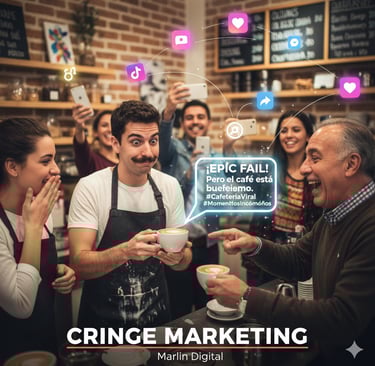 Guía rápida de "Cringe Marketing" para negocios locales. Aprende cómo usar vídeos imperfectos y humor (fails y errores) para volverte viral en tu barrio. Deja la ejecución en manos de Marlin Digital.